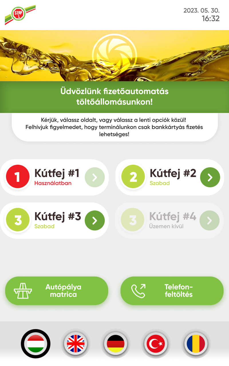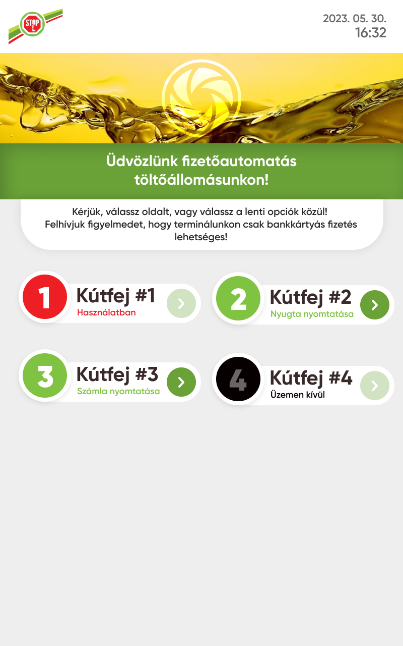 A rendszer úgy lett kialakítva, hogy több kútfejet is képes legyen párhuzamosan vezérelni egy automata. Ha a képernyőn látsz Szabad jelzésű kútfejet, válaszd ki és kezd meg rajta a automatás üzemanyagvásárlás folyamatát.