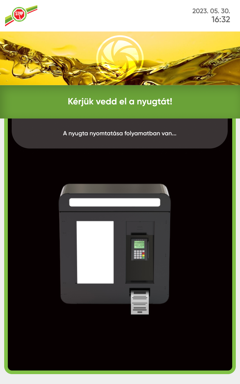 A tankolást követően kérjük fáradj vissza az automatához, hogy átvedd a visszajárót, valamint a bizonylatot. Ehhez először meg kell adnod az eszköz képernyőjén, hogy melyik kútfejnél tankoltál. Amennyiben készpénzes fizetési módot választottál és nem tankoltad le az előre beállított összegnek megfelelő mennyiséget a rendszer automatikusan visszaadja a visszajárót, vagy túlfizetési bizonylatot nyomtat, amit később levásárolhatsz benzinkútjainknál. Más fizetési módok esetén csak a letankolt mennyiségnek megfelelő összeget vonja le a rendszer a számládról.